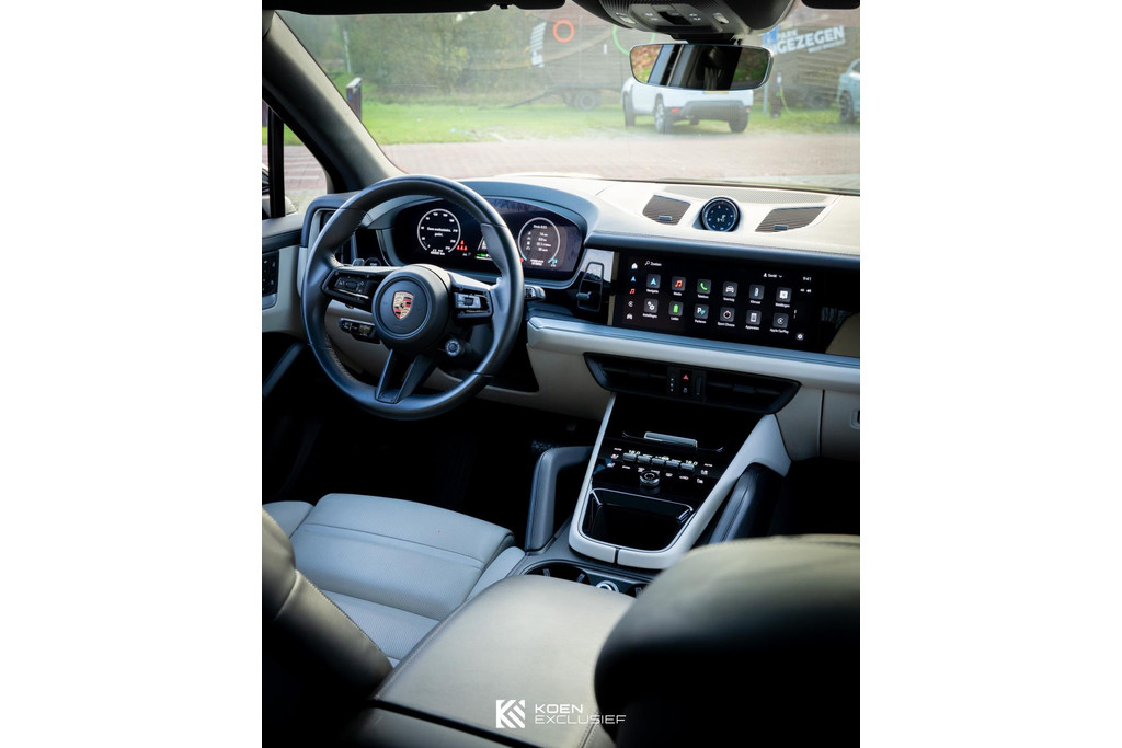 Het interieur is uitgerust met een 12,6-inch touchscreen en biedt diverse connectiviteitsopties zoals Apple CarPlay en Android Auto. Deze auto is bovendien uitgerust met de optioneel adaptieve luchtvering. Dit nieuw ontwikkelde systeem is uitgevoerd met een 2-kamer luchtveringstechnologie, wat zorgt voor enerzijds extra rijcomfort en anderzijds een betere wegligging. Met name over het nieuwe onderstel zijn wij zeer onder de indruk. Het is echt ongelofelijk hoe zijdezacht de Cayenne oneffenheden wegneemt en als je wilt, kun je hem gewoon de hoek om gooien. Een goed merkbaar verschil met voor de facelift.