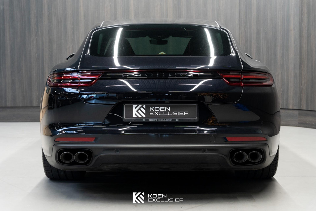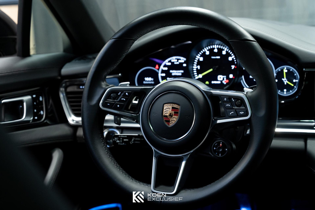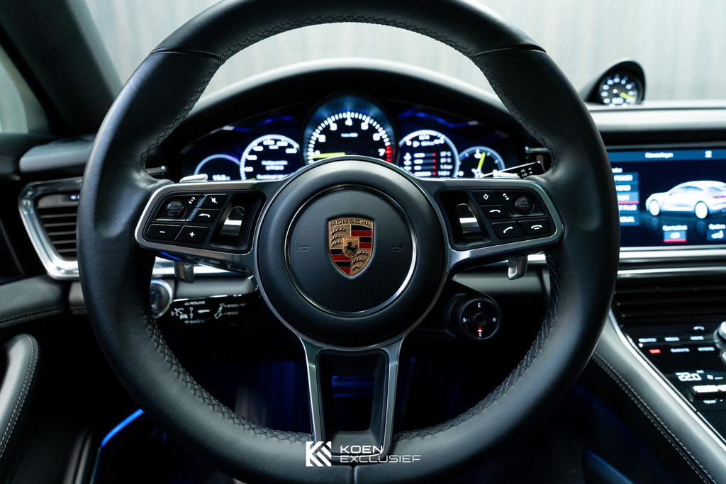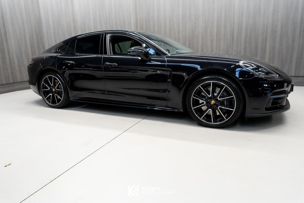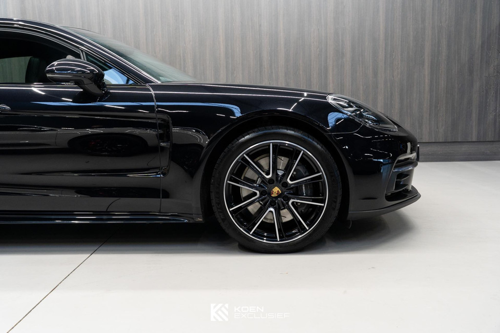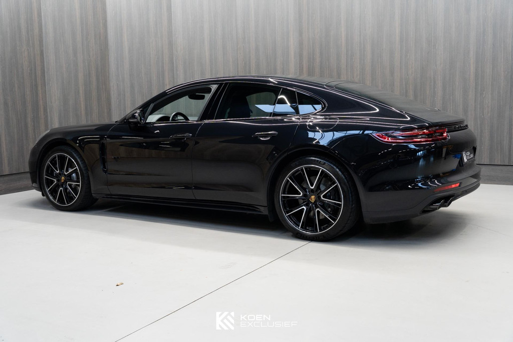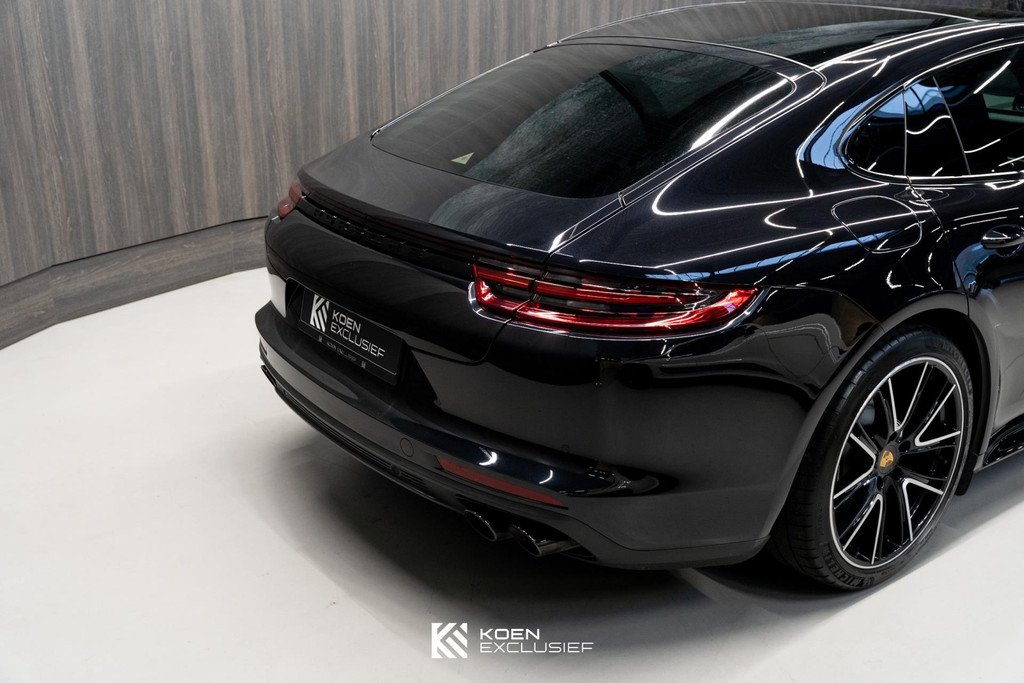 Sportuitlaatsysteem zwart, stuurwielverwarming, 21 inch Exclusive Design wiel diepzwart metallic gespoten, stoelventilatie voorstoelen, afdekking bekerhouders voorin, verval van Panamera 10 aanduiding op voorportieren, parkAssistent voor en achter incl. camera en Surround View, Matrix LED koplampen inclusief Porsche Dynamic Light System Plus (PDLS Plus), 4-zone automatische airconditioning, ‘PORSCHE’ logo zwart hoogglans, Head-Up Display, adaptieve cruise control inclusief filehulp, opbergvakkenpakket, sierlijsten rond zijruiten zwart hoogglans, sfeerverlichting, SportDesign sideskirts, adaptieve luchtvering inclusief PASM, remzadels zwart, stuurbekrachtiging Plus, naafdoppen met wapen in kleur, panoramadaksysteem, stoelverwarming voor, privacybeglazing zij- en achterruit, zelfdimmende binnen- en buitenspiegels, dashboard en portieren in leder, interieurpakket hoogglans zwart, Porsche embleem op hoofdsteunen, SportDesign buitenspiegiels zwart hoogglans gespoten, automatische dimmende buitenspiegels, dorpellijsten geborsteld aluminium, rijstrookwisselhulp, adaptieve cruise control, BOSE Surround Sound-System, Apple CarPlay, Smartphone compartiment, on-board lader met 7,2 kW, sportstoelen elektrisch verstelbaar,
