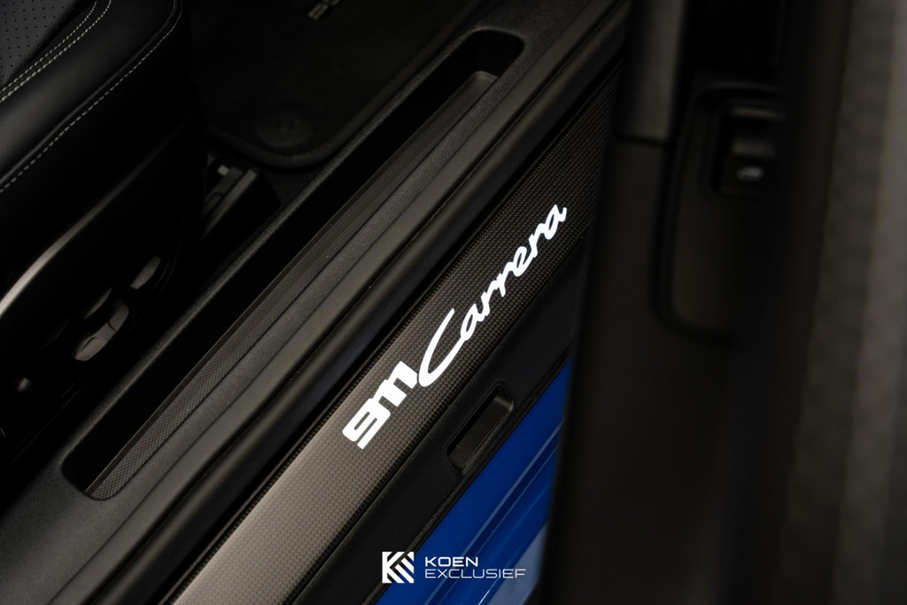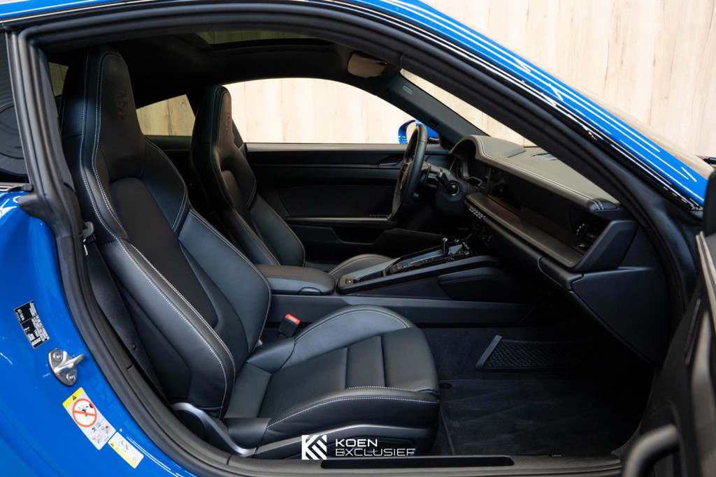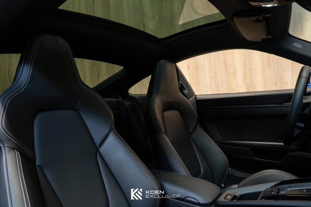 Uniek compleet uitgevoerde auto voorzien van zeer veel opties. In- en exterieur zijn in nieuwstaat. Je kunt aan alles zien dat de auto slecht 15dkm heeft gereden. De auto is onder andere voorzien van een 84 liter brandstoftank, sportuitlaatsysteem (uitlaatpijpen in zwart), stuurbekrachtiging plus, wielen hoogglans zwart gespoten, bekleding stuurkolom leder (in combinatie met memorypakket), SportDesign pakket hoogglans zwart, GT-sportstuurwiel met mat carbon inleg incl. stuurwielverwarming, modelaanduiding 911 in hoogglans zwart, liftsysteem vooras, ionisator, exclusief ontworpen tankdop, elektrisch bedienbaar glazen schuifdak, Porsche embleem op hoofdsteunen, pre-uitrusting daktransportsysteem, 2-persoons achterbank, Porsche Entry, voorruit met grijze band, privacybeglazing, interieurpakket carbon mat met accenten zwart, zonnekleppen leder, lamellen motordeksel gespoten, Porsche-embleem op deksel opbergvak, buitenspiegel onderranden exterieurkleur gespoten inclusief spiegelbasis gespoten in hoogglans zwart, dorpellijsten Carbon mat, verlicht, Lane Change Assist, getinte HD-Matrix led-koplampen, Sport Chrono Pakket incl. Porsche Track Precision App & bandentemperatuurweergave, adaptive cruise control, exclusive achterlichten, BOSE, bekerhouderbekleding leder, achteruitkijkspiegel paneel in leder met decoratief stiksel, gepersonaliseerde autosleutels gespoten met sleuteletui, 20-/21-inch Carrera S wielen, Surround View with Active Parking Support, PORSCHE-logo hoogglans zwart gespoten, Adaptieve sportstoelen Plus, elektrisch 18-voudig met geheugenpakket, sierlijsten zijruiten hoogglans zwart gespoten, voorbereiding Porsche Dashcam, Led-deurverlichting met 'PORSCHE'-logo, Porsche Active Suspension Management (PASM), remsysteem met remklauwen zwart, zelfdimmende binnen- en buitenspiegels met regensensor, lederen interieur en tenslotten het Licht Design Pakket.