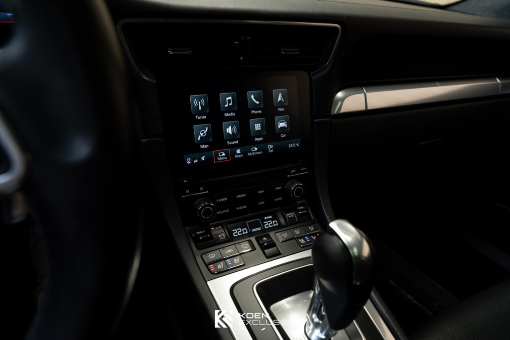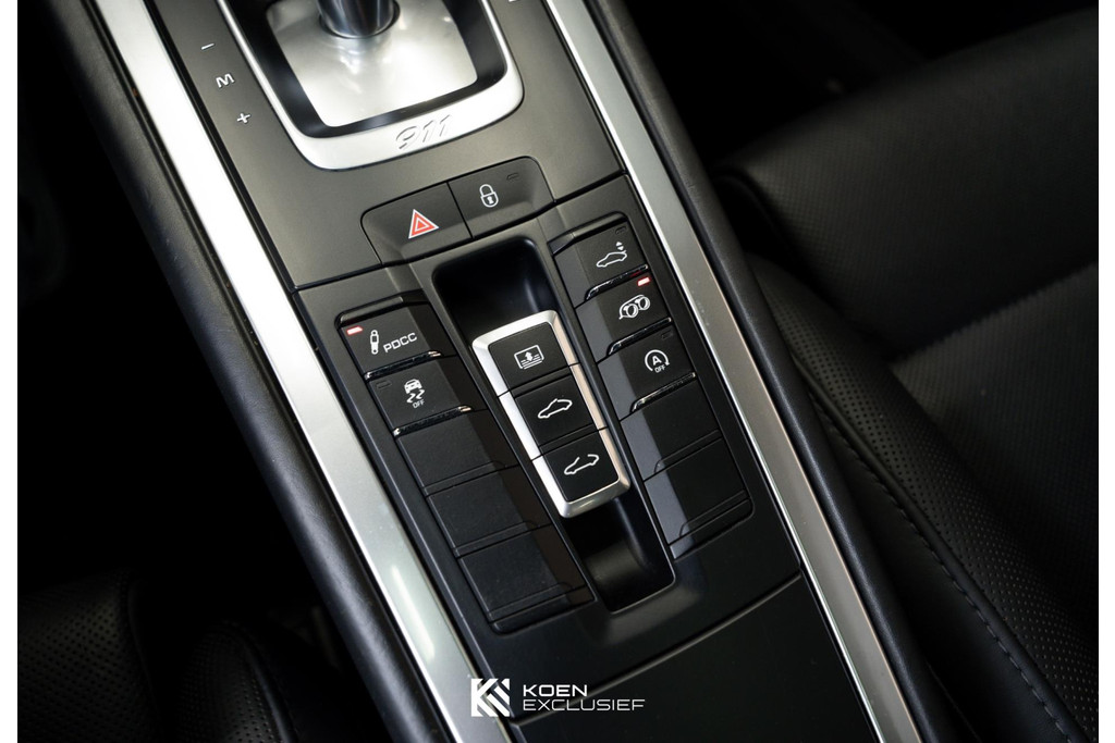 Verder is deze S erg compleet uitgerust met Porsche Dynamic Chassis Control (PDCC) incl. PASM sportonderstel (-20 mm), een sportuitlaatsysteem, stoelverwarming en stoelventilatie, achterasbesturing, multifunctie en stuurwielverwarming, voorruit met grijze band, HomeLink® (garagedeuropener), Licht-Design Pakket, indicatie maximale snelheid, parkassistent voor en achter inclusief camera, elektrisch schuif-kanteldak (glas), stuurbekrachtiging Plus, modelaanduiding "911", BOSE, adaptieve sportstoelen Plus (18-voudig verstelbaar, elektrisch) met Memory Pakket, zelfdimmende binnen-/buitenspiegels met geïntegreerde regensensor, Sport Chrono pakket, wiel gespoten in platinum (zijdeglans), digitale radio, LED koplampen ZWART inclusief Porsche Dynamic Light System Plus (PDLS+), toerenteller in rodiumzilver en een uitgebreide lederuitrusting inclusief leer op dashboard en deuren.
