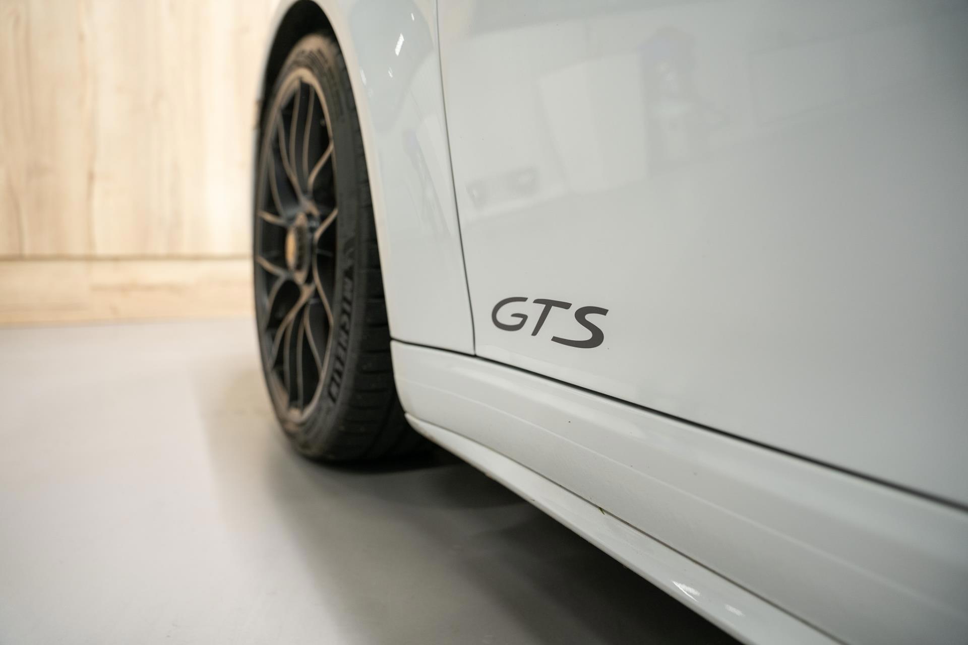 Deze auto is uitgevoerd in de kleur Carrerawit metallic. In het zonlicht is de metallic goed zichtbaar waardoor de kleur een fraaie zilveren glans krijgt. Een bijzondere kleur die je niet vaak ziet op een GTS en daarbij duidelijk afwijkt van de standaard witte kleur van Porsche.