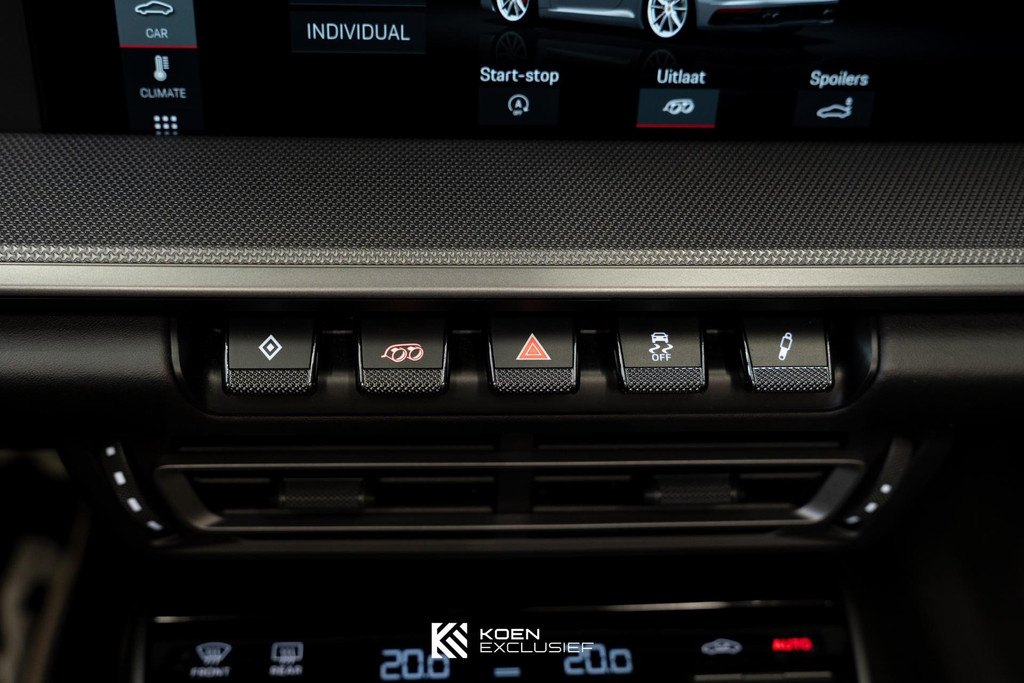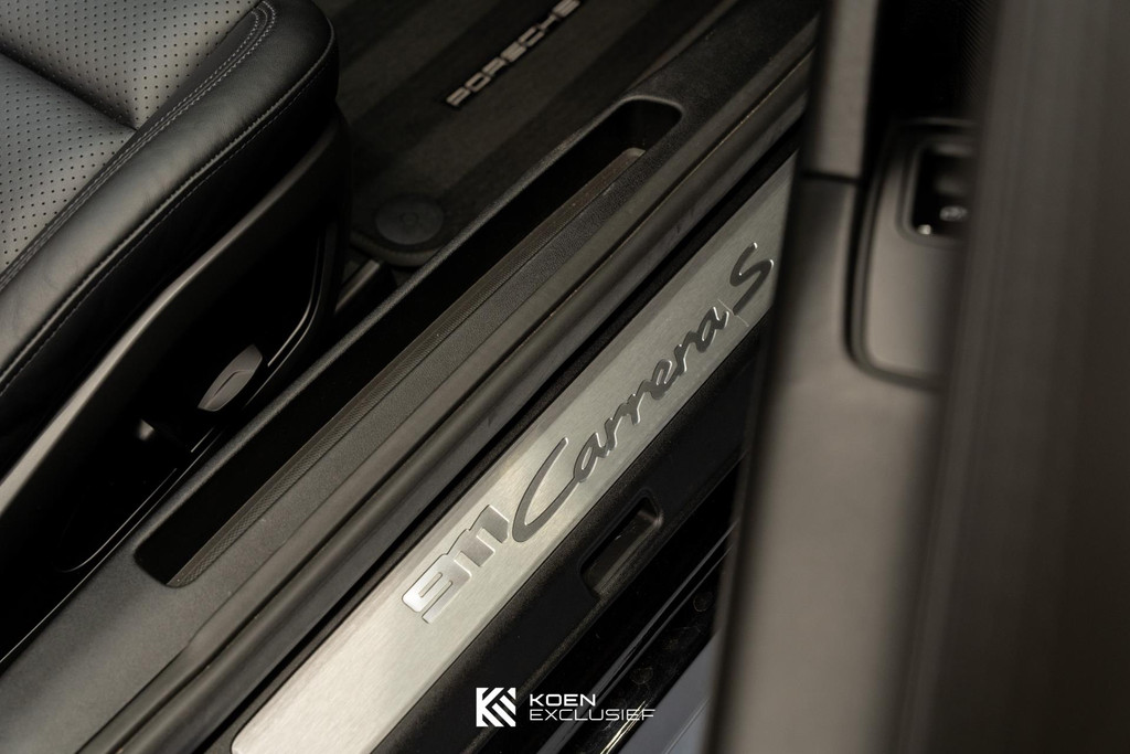 90 liter brandstoftank, sportuitlaatsysteem zwart, PASM sportonderstel (-10 mm), Stuurbekrachtiging, wielen zwart zijdeglans gespoten, GT-sportstuurwiel incl. stuurwielverwarming, stoelverwarming, voorruit met grijze band, lederen dashboard en portierbekleding, Sport Chrono Pakket, BOSE Surround Sound System, PORSCHE logo zwart, digitale radio, bandafdichtingscompound en elektrische luchtcompressor, 20/21-inch Carrera S wielen, dorpellijsten geborsteld aluminium, ParkAssistent voor en achter, Apple CarPlay, 8-traps Porsche Doppelkupplung (PDK), Porsche Torque Vectoring Plus (PTV Plus) en ParkAssistent inclusief achteruitrijcamera.