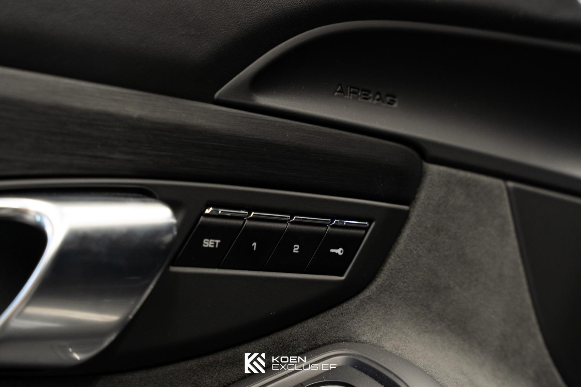 Porsche Doppelkupplung (PDK), stoelverwarming, adaptive cruise control inclusief Porsche Active Safe, rijstrookwisselhulp, achterasbesturing, multifunctie en stuurwielverwarming, voorruit met grijze band, bagage net bij voetruimte passagier, HomeLink® (garagedeuropener), Licht-Design Pakket, indicatie maximale snelheid, ParkAssistent voor en achter inclusief camera, elektrisch schuif-kanteldak, stuurbekrachtiging plus, BOSE® Surround Sound System, Adaptieve sportstoelen Plus (18-voudig verstelbaar, elektrisch) met Memory Pakket, zelfdimmende binnen-/buitenspiegels met geïntegreerde regensensor, digitale radio, LED koplampen ZWART inclusief Porsche Dynamic Light System Plus (PDLS+), zonnekleppen leder, bekleding stuurkolom in leder, privacy beglazing achterruit, wijzerplaten instrumentenpaneel zwart, PASM sportonderstel (-20 mm), dynamische motorsteunen, sportuitlaatsysteem, Porsche Torque Vectoring Plus, regensensor, electrisch dimmende binnenspiegel, 20 inch 911 Turbo S wiel, SportDesign spiegels in exterieurkleur gespoten, hemelbekleding in alcantara, Sport Chrono pakket, SportDesign voorbumper, wielen zijdeglans zwart gespoten, PDK hendel alcantara en donkere achterlichten.