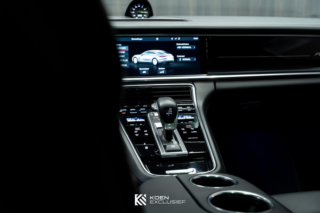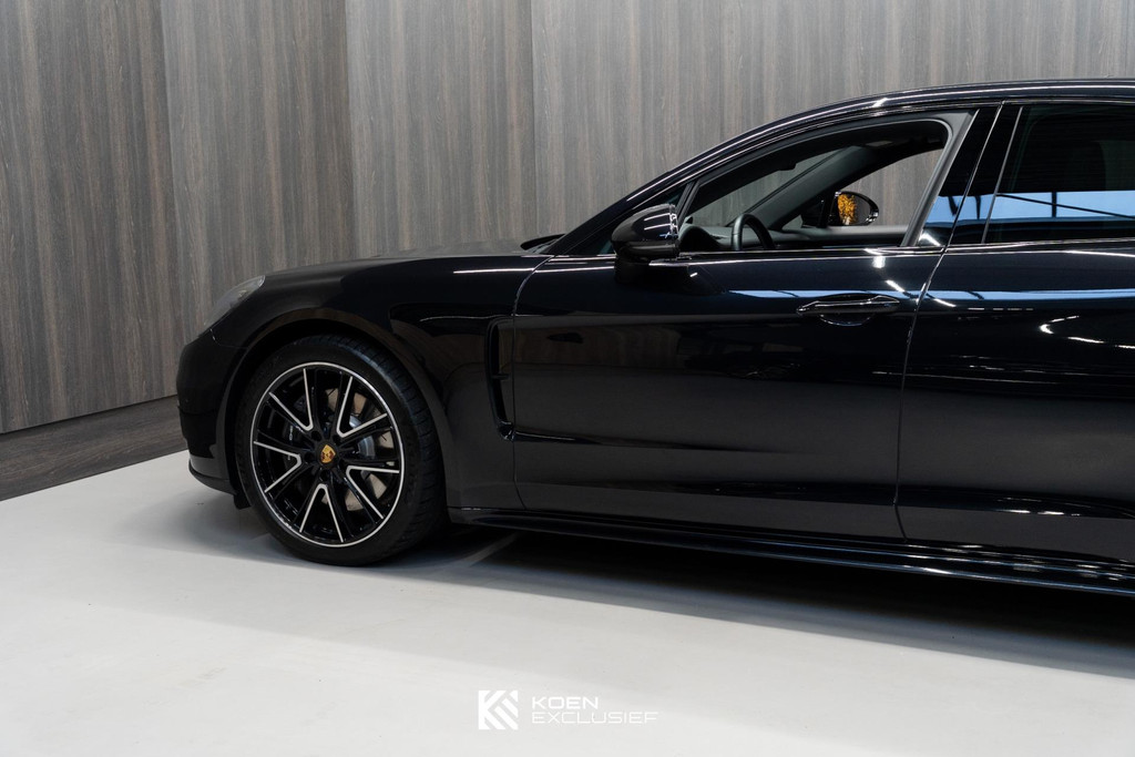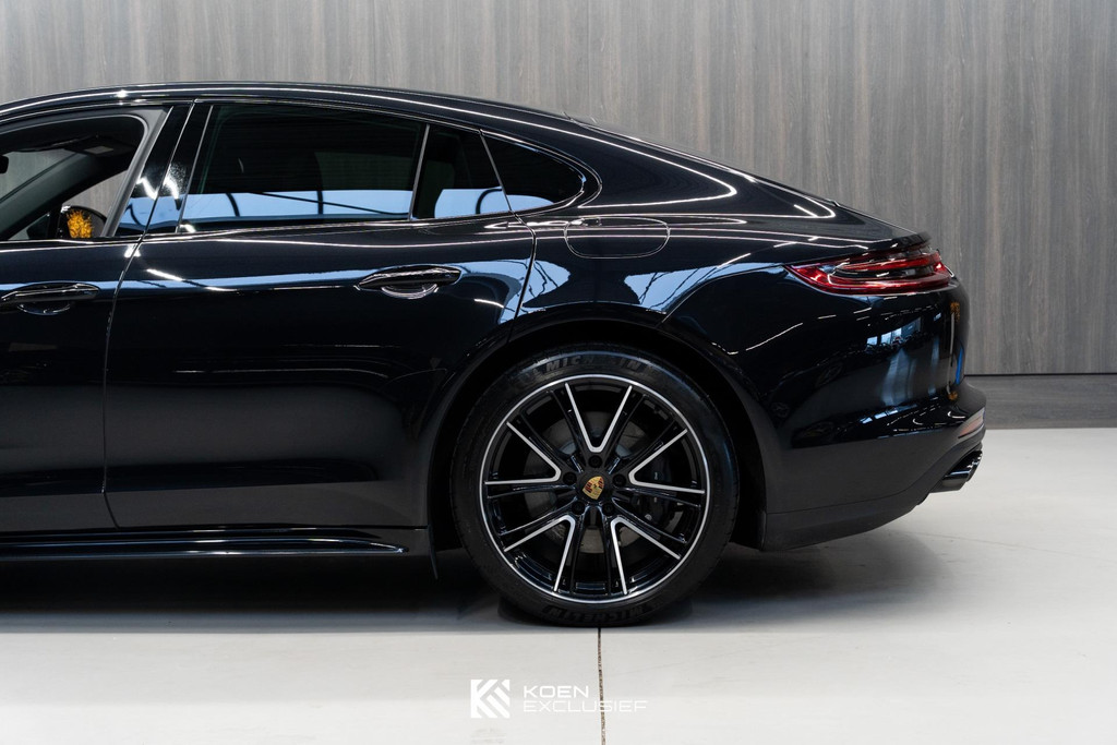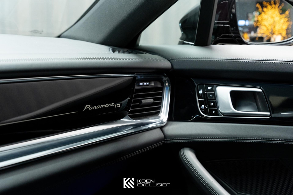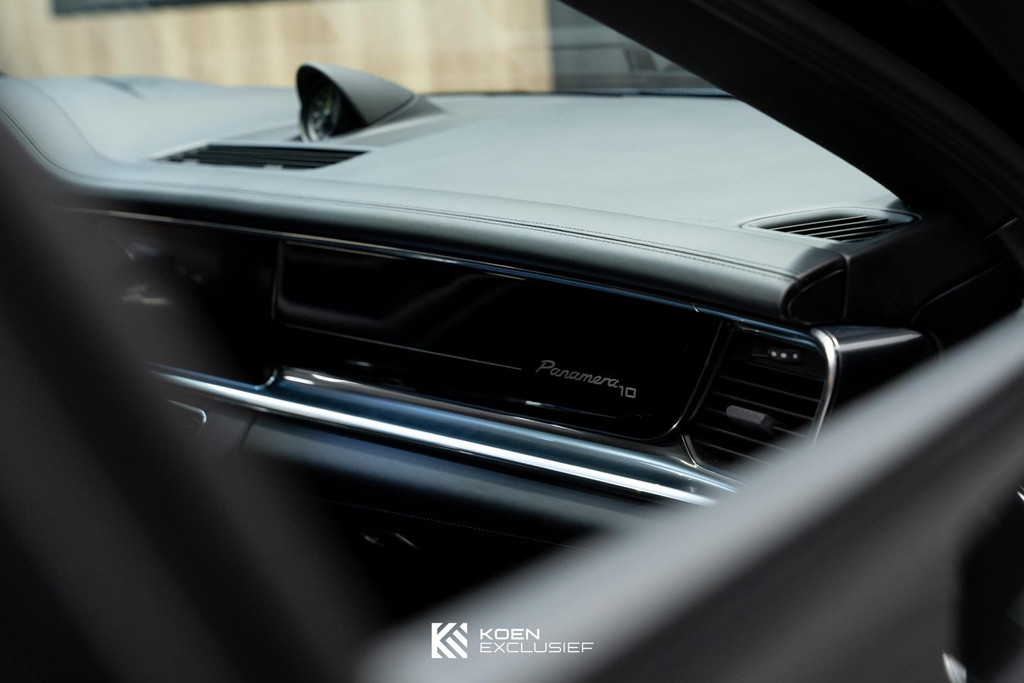 Sportuitlaatsysteem zwart, stuurwielverwarming, 21 inch Exclusive Design wiel diepzwart metallic gespoten, stoelventilatie voorstoelen, afdekking bekerhouders voorin, verval van Panamera 10 aanduiding op voorportieren, parkAssistent voor en achter incl. camera en Surround View, Matrix LED koplampen inclusief Porsche Dynamic Light System Plus (PDLS Plus), 4-zone automatische airconditioning, ‘PORSCHE’ logo zwart hoogglans, Head-Up Display, adaptieve cruise control inclusief filehulp, opbergvakkenpakket, sierlijsten rond zijruiten zwart hoogglans, sfeerverlichting, SportDesign sideskirts, adaptieve luchtvering inclusief PASM, remzadels zwart, stuurbekrachtiging Plus, naafdoppen met wapen in kleur, panoramadaksysteem, stoelverwarming voor, privacybeglazing zij- en achterruit, zelfdimmende binnen- en buitenspiegels, dashboard en portieren in leder, interieurpakket hoogglans zwart, Porsche embleem op hoofdsteunen, SportDesign buitenspiegiels zwart hoogglans gespoten, automatische dimmende buitenspiegels, dorpellijsten geborsteld aluminium, rijstrookwisselhulp, adaptieve cruise control, BOSE Surround Sound-System, Apple CarPlay, Smartphone compartiment, on-board lader met 7,2 kW, sportstoelen elektrisch verstelbaar,