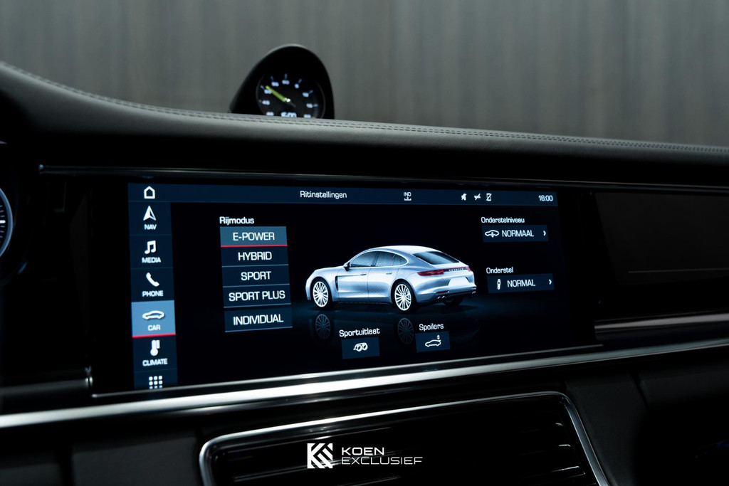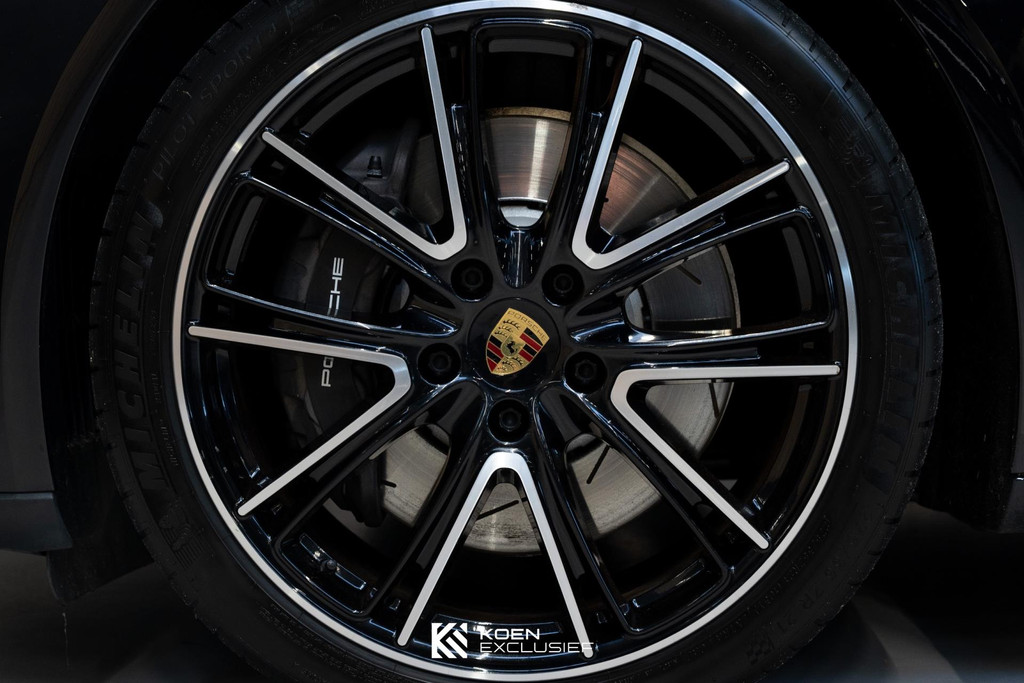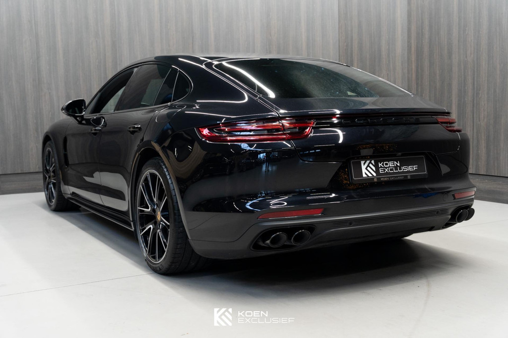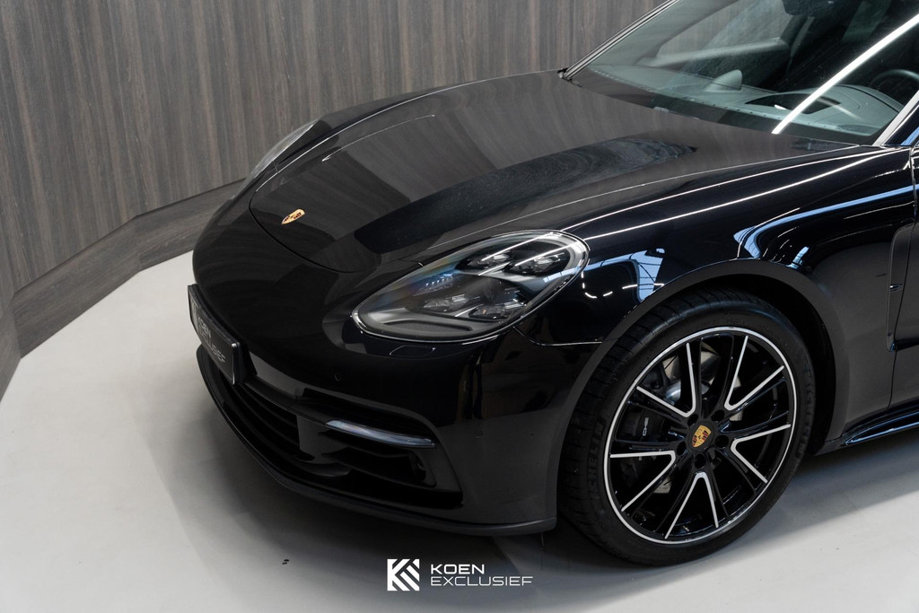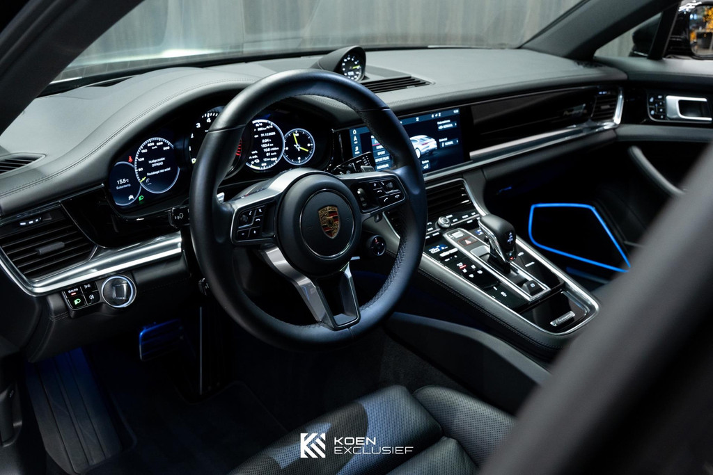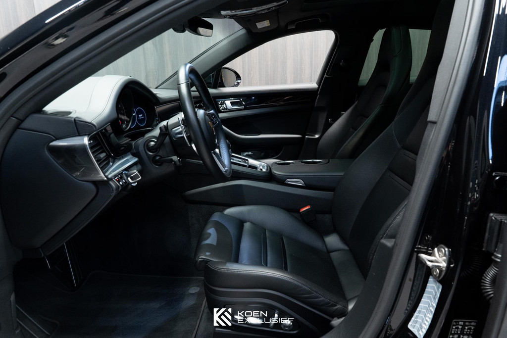 Sportuitlaatsysteem zwart, stuurwielverwarming, 21 inch Exclusive Design wiel diepzwart metallic gespoten, stoelventilatie voorstoelen, afdekking bekerhouders voorin, verval van Panamera 10 aanduiding op voorportieren, parkAssistent voor en achter incl. camera en Surround View, Matrix LED koplampen inclusief Porsche Dynamic Light System Plus (PDLS Plus), 4-zone automatische airconditioning, ‘PORSCHE’ logo zwart hoogglans, Head-Up Display, adaptieve cruise control inclusief filehulp, opbergvakkenpakket, sierlijsten rond zijruiten zwart hoogglans, sfeerverlichting, SportDesign sideskirts, adaptieve luchtvering inclusief PASM, remzadels zwart, stuurbekrachtiging Plus, naafdoppen met wapen in kleur, panoramadaksysteem, stoelverwarming voor, privacybeglazing zij- en achterruit, zelfdimmende binnen- en buitenspiegels, dashboard en portieren in leder, interieurpakket hoogglans zwart, Porsche embleem op hoofdsteunen, SportDesign buitenspiegiels zwart hoogglans gespoten, automatische dimmende buitenspiegels, dorpellijsten geborsteld aluminium, rijstrookwisselhulp, adaptieve cruise control, BOSE Surround Sound-System, Apple CarPlay, Smartphone compartiment, on-board lader met 7,2 kW, sportstoelen elektrisch verstelbaar,