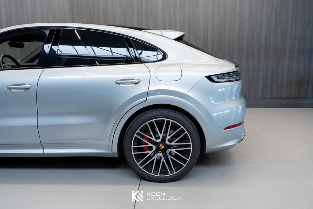 Wat deze Cayenne Coupé extra bijzonder maakt, is de zeer uitgebreide optielijst. Denk aan Porsche Dynamic Chassis Control (PDCC), achterasbesturing, Porsche Torque Vectoring Plus, Sport Chrono, het sportuitlaatsysteem en HD-Matrix LED koplampen. In combinatie met de 22-inch 911 Turbo Design wielen en het SportDesign pakket in hoogglans zwart ontstaat een zeer sportieve en tegelijk elegante verschijning.